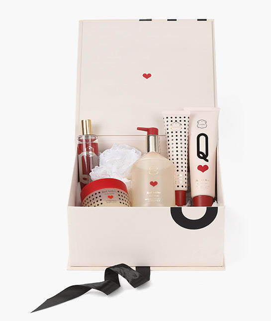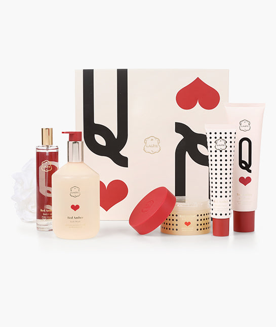 מארז פינוק עשיר ומפואר, שמעניק חוויית טיפוח שלמה בניחוח Red Amber