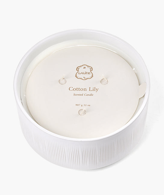 נר ריחני Cotton Lily – עיצוב מינימליסטי בכלי לבן עם טקסטורה עדינה, המעניק מראה נקי ואלגנטי. הנר מפיץ שילוב מושלם של ניחוחות כותנה ולילי, היוצרים תחושה רעננה ופרחונית שתמלא את החלל באווירה רגועה ומזמינה. אידיאלי לפינוק יומיומי או כמתנה מעודנת.