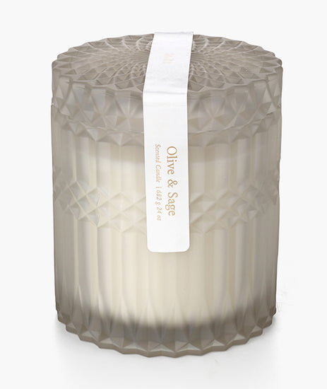 נר ריחני Olive & Sage – נר בעיצוב זכוכית עם מכסה אלגנטי, המפיץ ארומה עשירה של זית בשילוב עלי מרווה טריים. הריח העדין והצמחי ממלא את החדר בתחושת טבע רגועה, מושלם לרגעים שקטים בבית או לאירוח באווירה מיוחדת.