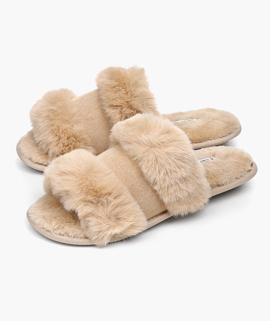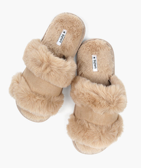 נעלי בית פרוותיות בצבע קרם – מעוצבות בצורה המפנקת ומחממת את כפות הרגליים. לנוחות מקסימלית, פרווה נעימה ומלטפת.