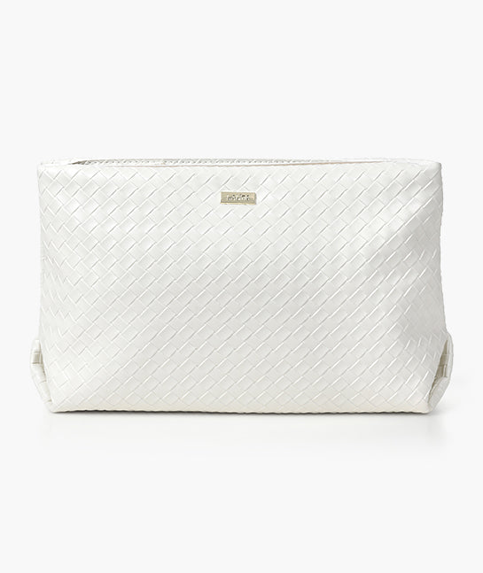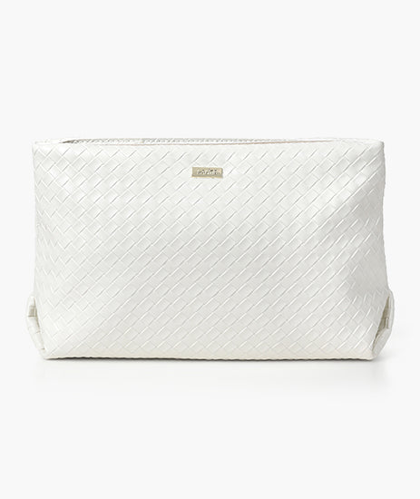 תיק קוסמטי לבן, פרקטי ואלגנטי לארגון מוצרי האיפור והטיפוח – בבית או בדרכים.